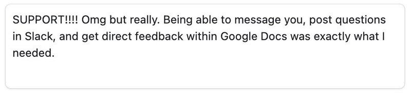 You can't "get it wrong" during Camp Cornerstone, because I won't let you. With access to me via Slack and weekly coworking sessions, none of your questions will go unanswered - and I'm always there to swoop in with an idea, a re-frame, or an edit when you need it.