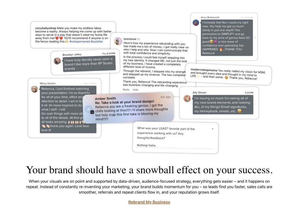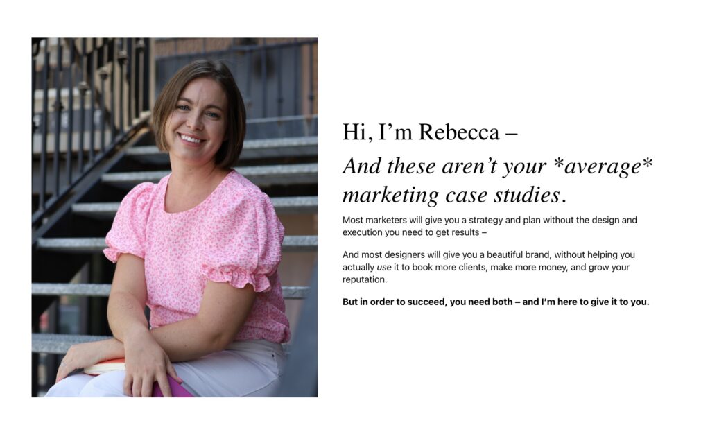 I cannot stress enough how much Rebecca is an experienced, PROVEN brand strategist! She was sitting on a huge mountain of client wins and wasn’t sure how to share about them.